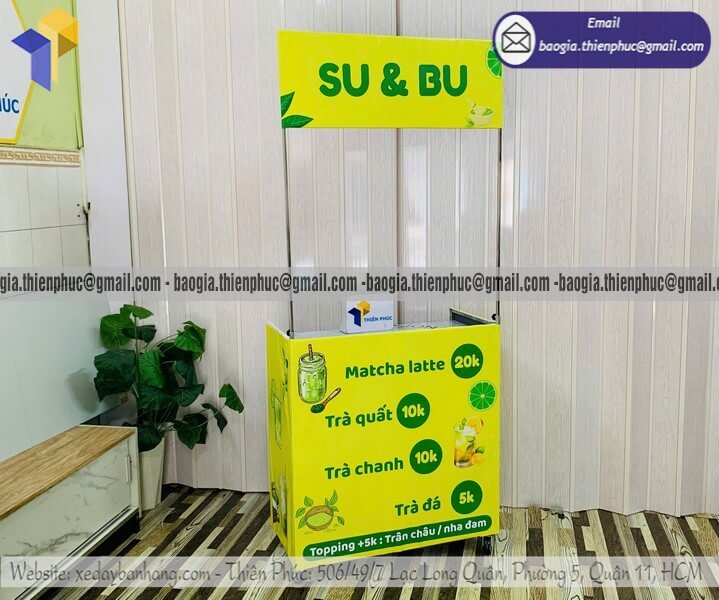 Tên sản phẩm: Báo giá quầy bán trà chanh hàng rong xếp gọn trên hè phố với logo SU & BU