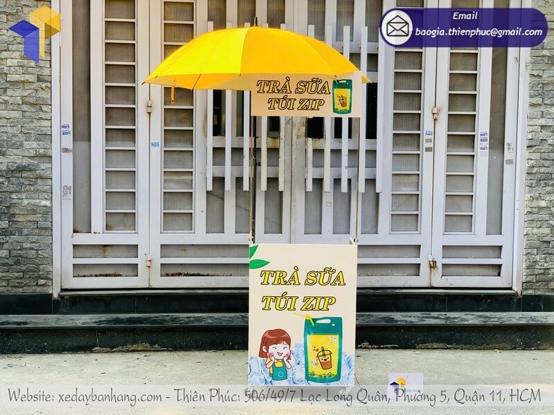 Tên sản phẩm: Báo giá quầy bán trà sữa dạo xếp gọn trên vỉa hè rẻ với logo TRÀ SỮA TÚI ZIP
