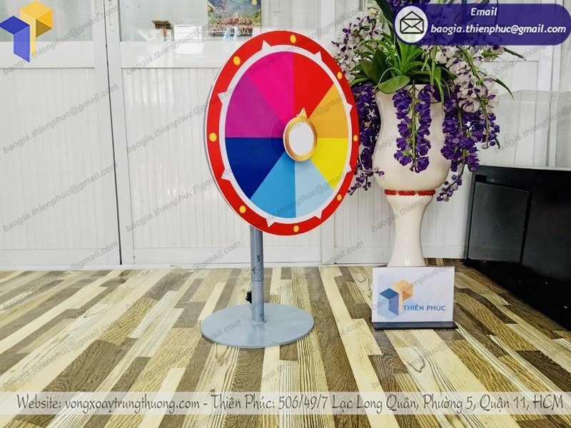 Chúng tôi xin được trân trọng giới thiệu với quý khách công ty Thiên PHúc là đơn vị có kinh nghiệm nhiều năm trong ngành quảng cáo, chúng tôi đã từng phục vụ rất nhiều khách hàng với đủ loại sản phẩm khác nhau, một trong những sản phẩm thường xuyên được khách hàng đặt hàng tại công ty chúng tôi là các mẫu vòng quay trúng thưởng, mô hình quảng cáo trúng thưởng quý khách có thể tham khảo